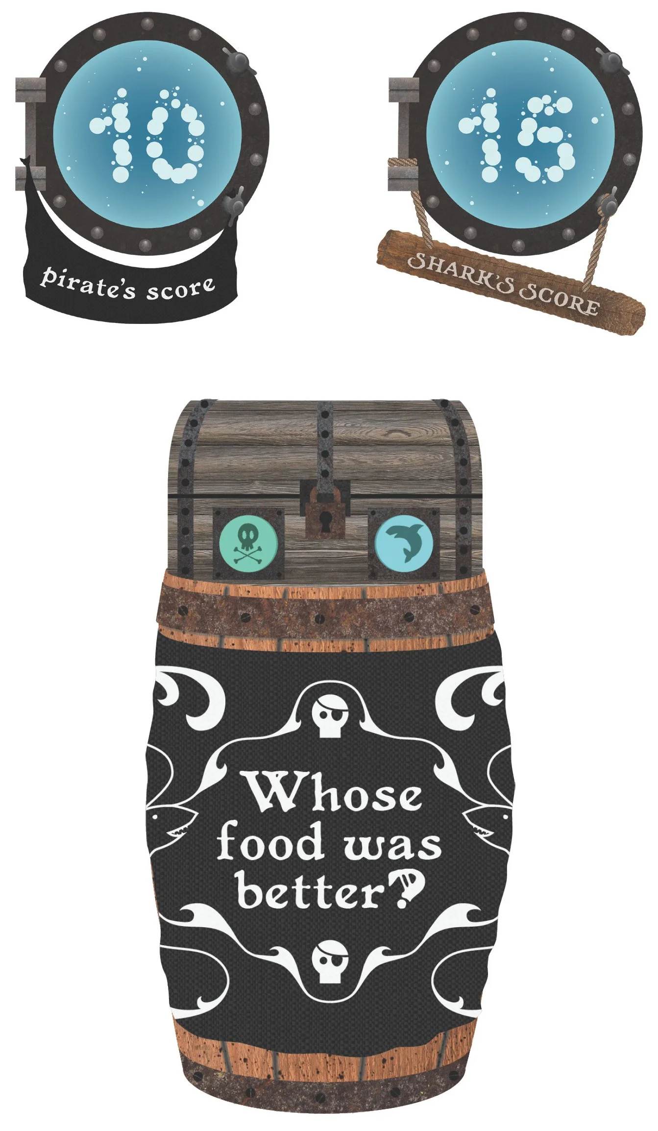The voting system gives guests the chance to voice their opinions on whose food is better. The pirate’s and shark’s scores are on a wall mounted display that changes after one of the buttons on the freestanding chest is pressed. The scores are shown as bubbles through a porthole since the ship is actively sinking.